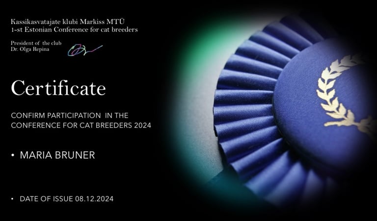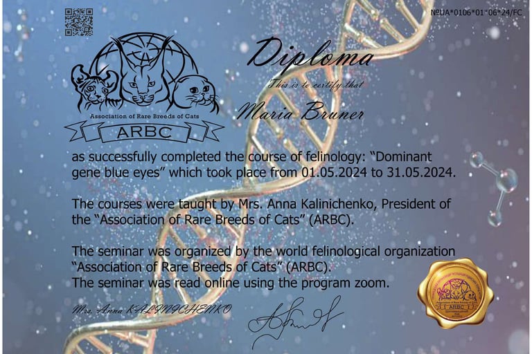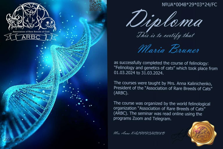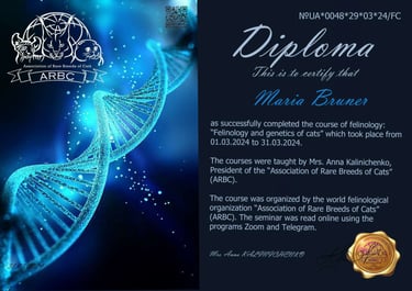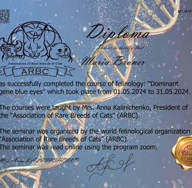 Mein Name ist Maria. Ich bin verliebt in diese wunderschöne Rasse BKH und deshalb beschäftige ich mich mit ihrer Zucht und Verbesserung in den Farben Gold und Silber.